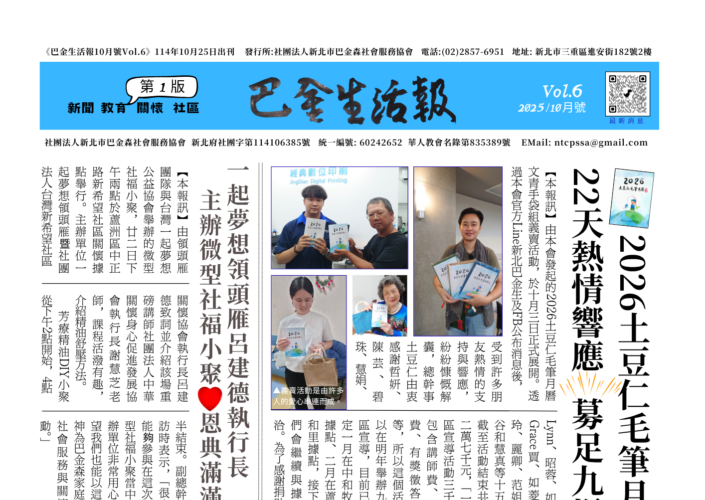 2026土豆仁毛筆月曆義賣活動 募集 9場 宣導金